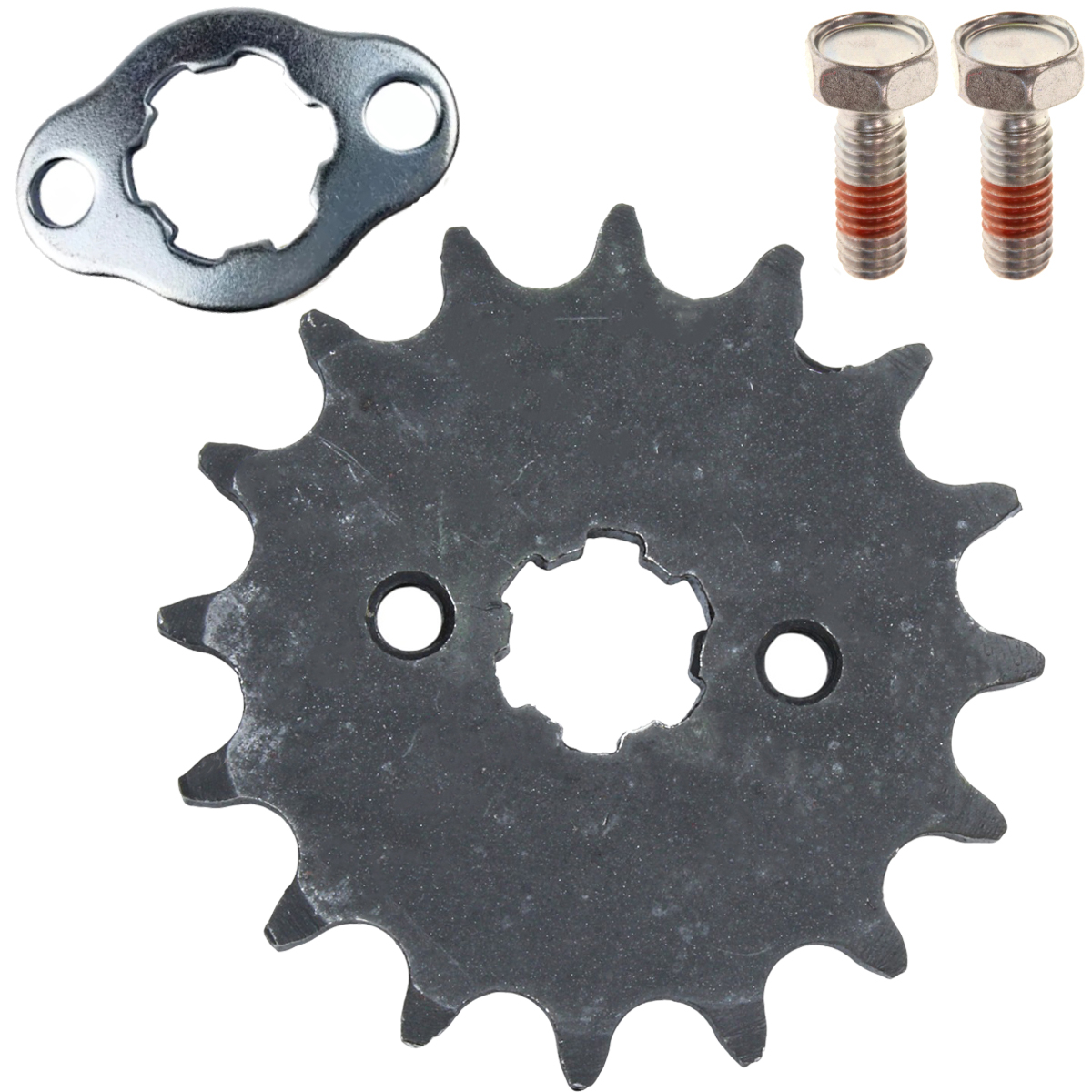 Kit composto por: 1 pinhão, 1 trava e 2 parafusos
